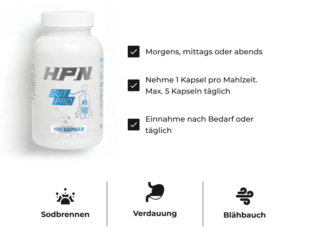 Ein gesunder Magen sorgt außerdem dafür, dass Mahlzeiten schneller und ohne Reizung verarbeitet werden. Gut Pro unterstützt dich dabei, deine Nahrung besser zu verdauen und dich nach dem Essen wohler zu fühlen.