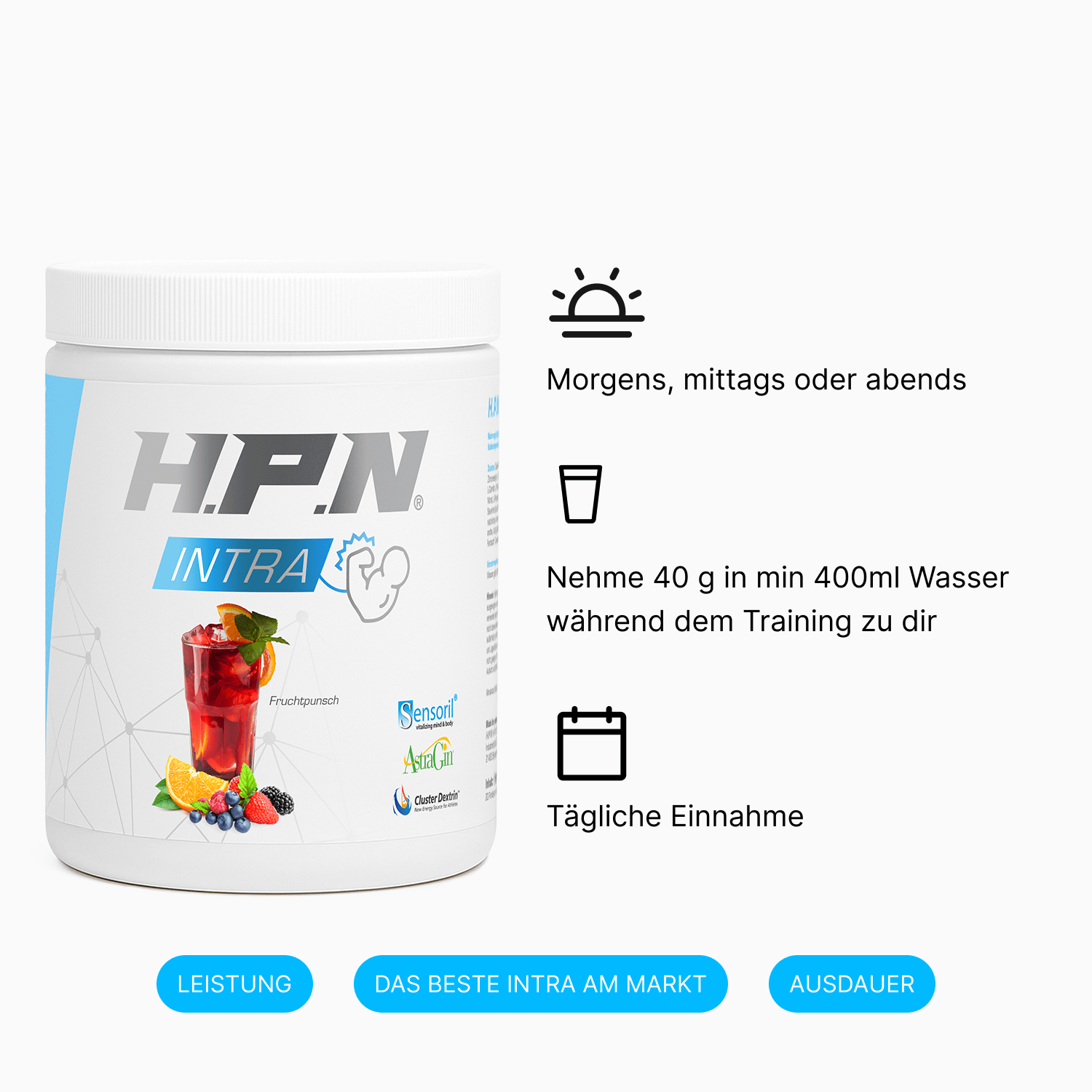 Wie bei allen HPN Produkten gilt: Alles greift ineinander. Intra lässt sich perfekt mit EAA+ oder Creatine+ kombinieren, um deine Performance auf das nächste Level zu heben.