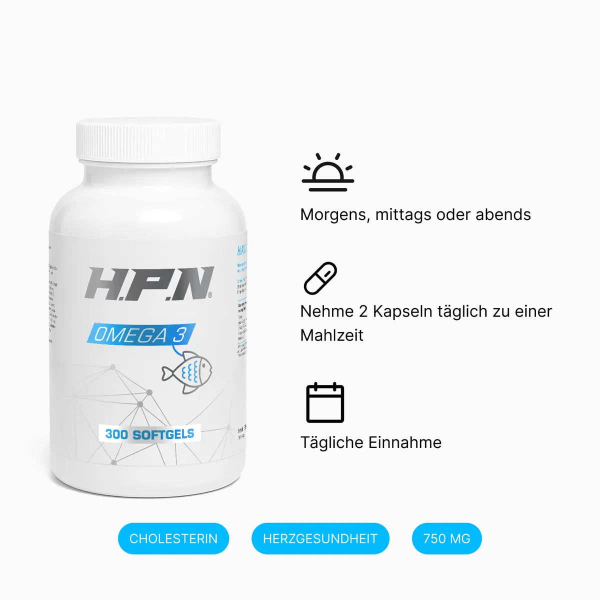 Omega 3 gehört zu den Basics, die in keiner Routine fehlen dürfen. Da der Körper diese Fettsäuren nicht selbst herstellen kann, musst du sie über die Nahrung zuführen. HPN liefert dir eine klare, hochdosierte Form mit 500 mg EPA und 250 mg DHA pro Kapsel.