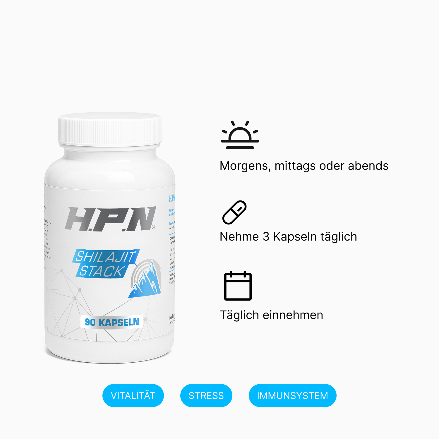 Und wie bei allen HPN Produkten gilt: Das System greift ineinander. Shilajit Stack lässt sich problemlos mit allen anderen HPN Produkten kombinieren und macht dein Setup vollständig und sicher.